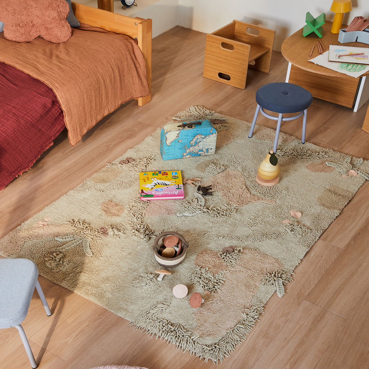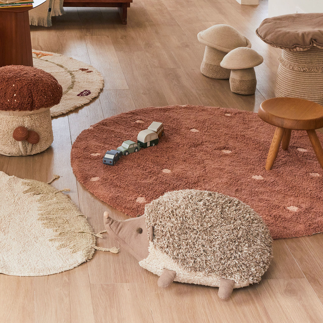 將這股安穩帶入地毯椅凳跟雲朵靠枕中,