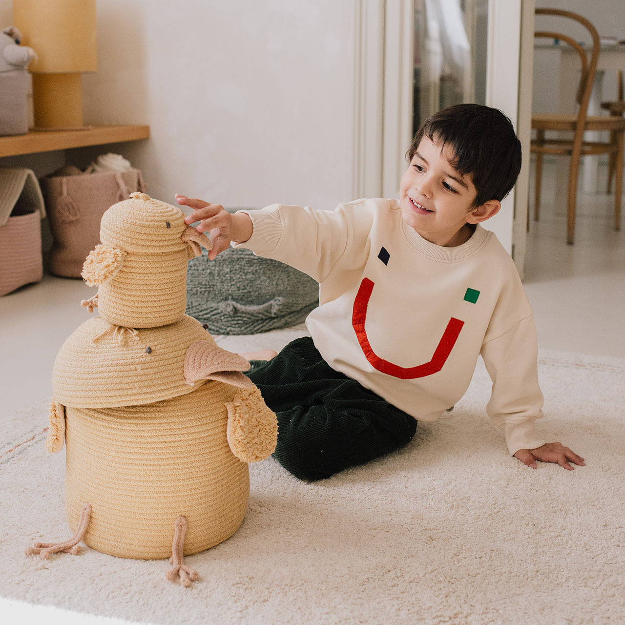 由回收PET寶特瓶製成的聚酯紗線與棉花混製而成,讓收納籃的結構更加堅固耐用,同時也傳達關愛地球及可持續使用的重要性。