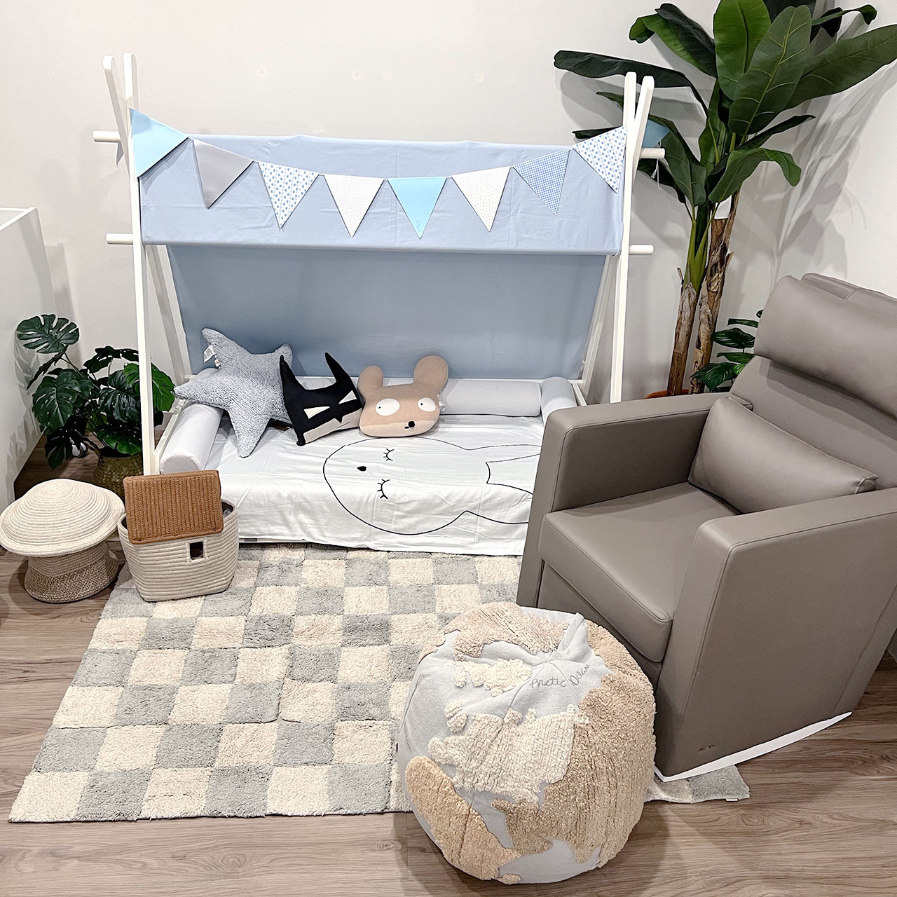 展示品牌 / ALONDRA全能嬰兒床、蒙特梭利HOMY兒童床、哺乳椅以及Träumeland璀夢地嬰幼兒床墊和Lorena Canals 可機洗純棉地毯、收納籃、抱枕、椅凳