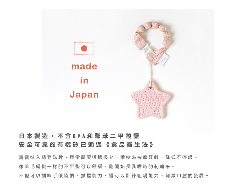 像羊毛編織一樣的不平整可以舒緩剛開始長乳齒時的刺痛感。