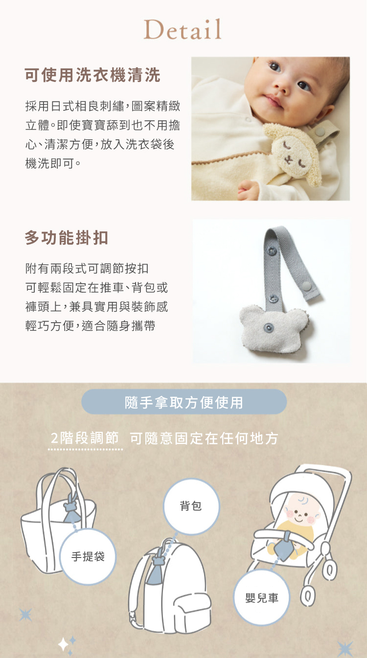 兩段式可調式按扣,可掛推車、背包或褲頭