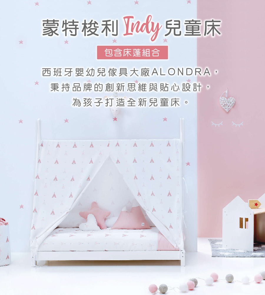 西班牙【ALONDRA】蒙特梭利INDY兒童床+床蓬組合 - 探險粉
