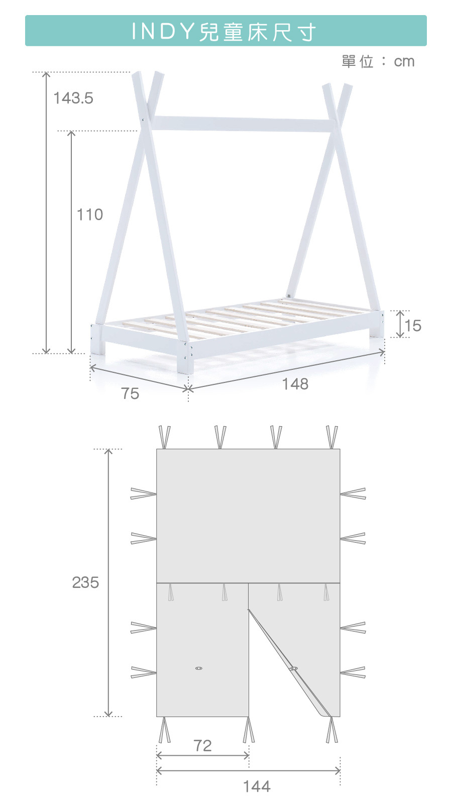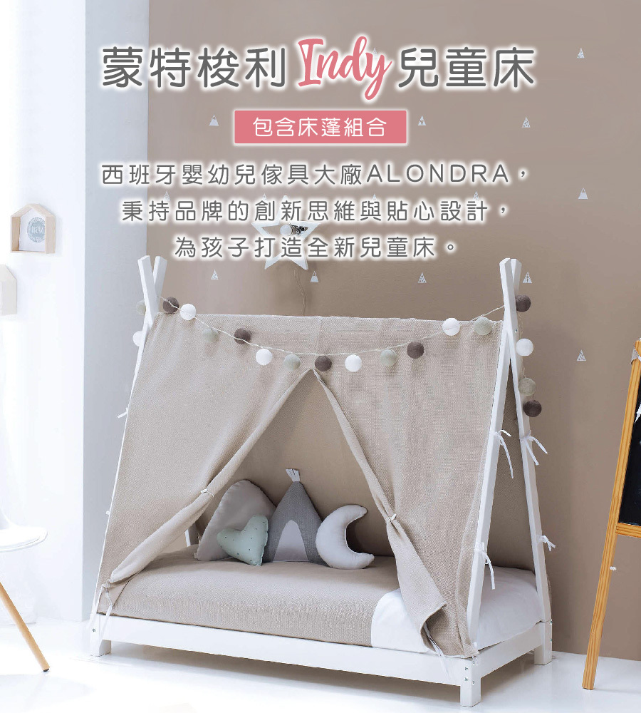 商品組合內容包括:蒙特梭利INDY兒童床床架和床蓬