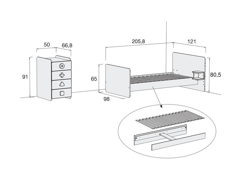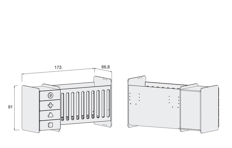 迷你多機能組合床-數學系列、將數學符號、幾何圖型以簡單可愛的圖示設計成抽屜把手,並加上圓滑邊角的安全巧思,將活潑不失質感的童趣展現出來,保有ALONDRA簡潔高雅的設計,替孩童的專屬空間打造溫馨具有質感的百搭風格。