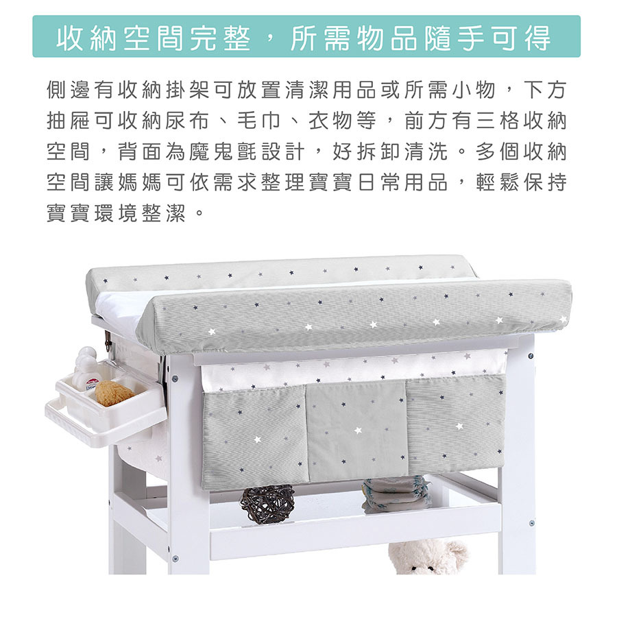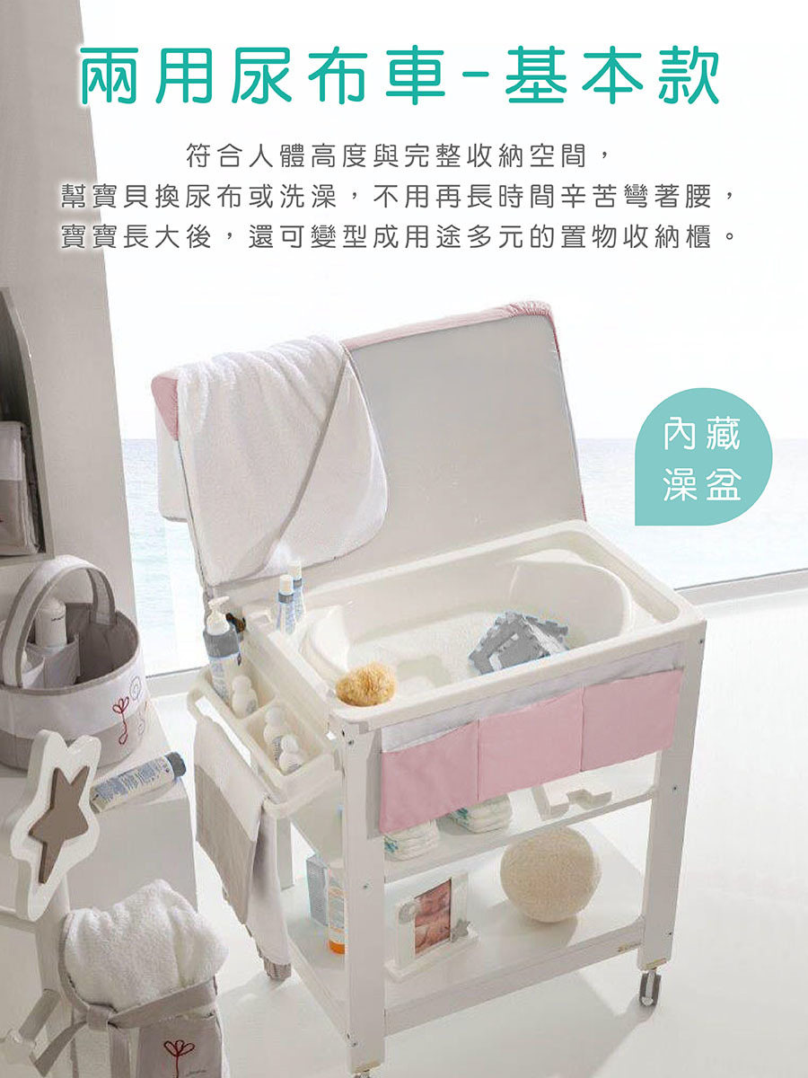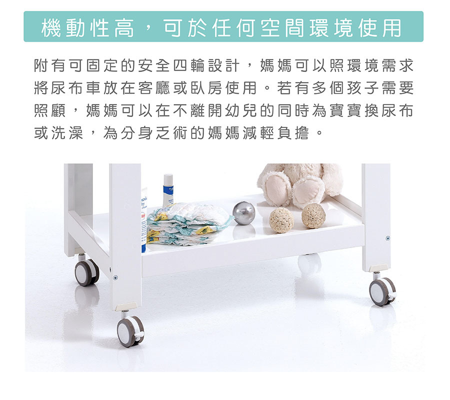 尿布車符合人體高度與完整收納空間,