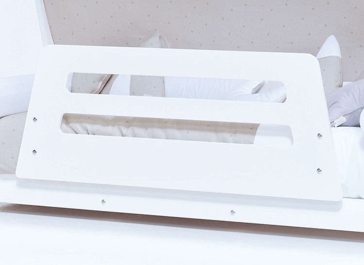 專為蒙特梭利兒童床設計,材質堅固耐用,使用無毒漆料。安裝護欄可防止孩子睡眠時從床上跌落,並增加安全感。