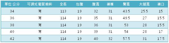 *以上尺寸皆為平量未撐開,因布種、彈性、測量起迄等因素,與實品誤差正負2公分以內為正常範圍。