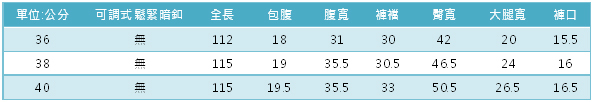 *以上尺寸皆為平量未撐開,因布種、彈性、測量起迄等因素,與實品誤差正負2公分以內為正常範圍。