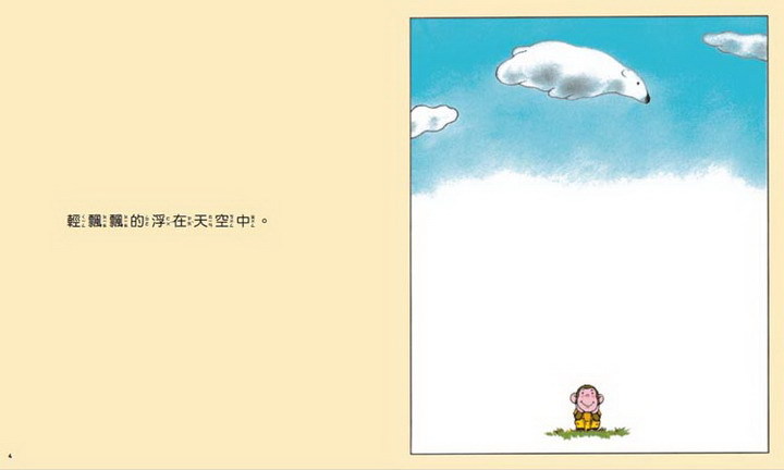 總是發揮想像力將身邊的物品變得更有趣的丹丹,這次帶著他的白熊弟弟一起來了。從一朵長得像白熊的白雲開始,丹丹想像冬天來了,白熊弟弟會變成雪降下來,開始一段雪地森林的探險。純粹用雲朵做聯想,丹丹捧著臉想像的樣子也有點像是在做白日夢的樣子,完全沉浸在自己的想像裡。孩子的想像力總是單純卻豐富,趁著好天氣帶著孩子觀察天上的雲吧,說不定白熊弟弟也會出現在天空中喔!