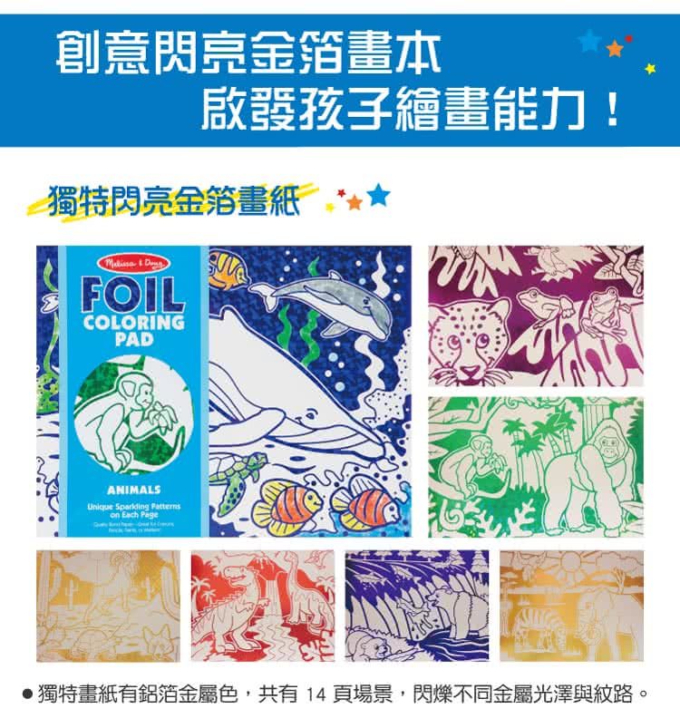 美國 瑪莉莎【Melissa & Doug】閃亮金銀箔紙繪圖本-野生動物