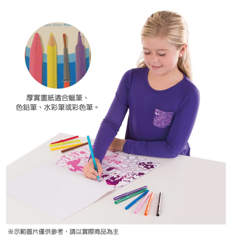 可用蠟筆、彩色筆或水彩作畫滿足孩子創作成就感適用年齡: 3 歲以上