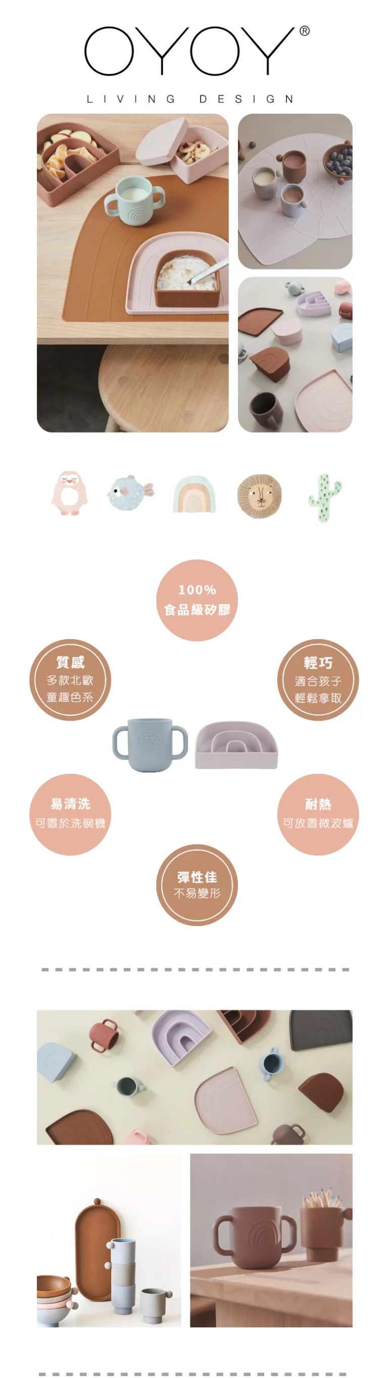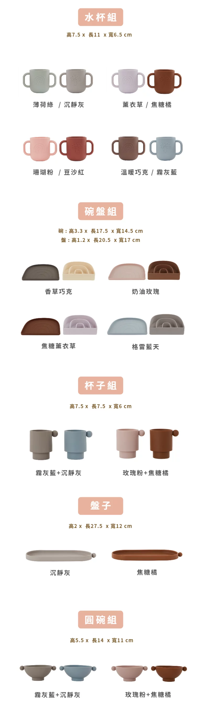100%食品級矽膠製成,皆專門為兒童所設計,不擔心易碎問題,雙把手設計輕巧易拿取