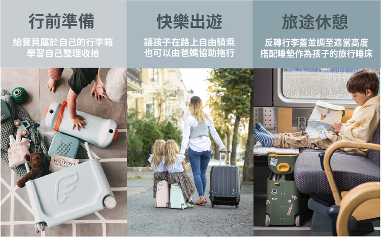給孩子屬於自己的行李箱,在旅途中自由騎行,更可在火車、高鐵及飛機上作為睡床使用。