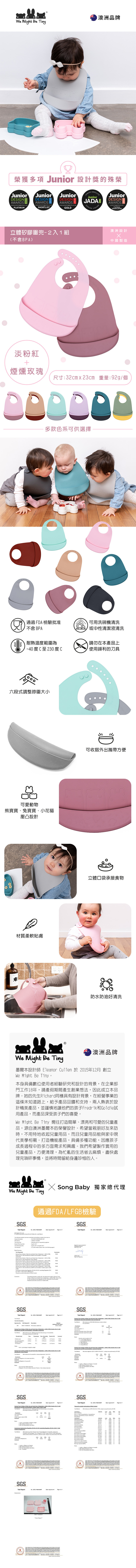 澳洲【We Might Be Tiny】立體矽膠圍兜-煙燻玫瑰+淡粉紅(二入一組)