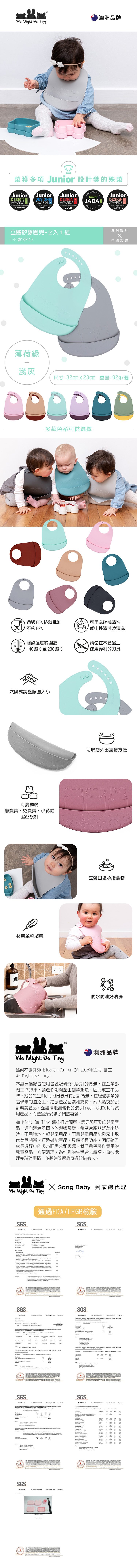 澳洲【We Might Be Tiny】立體矽膠圍兜-薄荷綠+淺灰(二入一組)