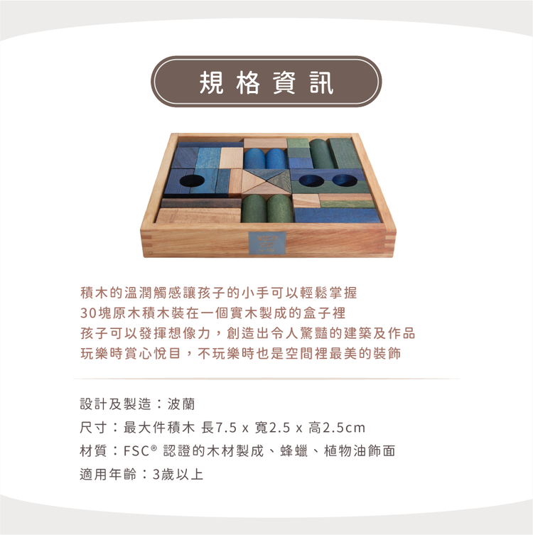 波蘭【WOODEN STORY】冷色積木組-30pcs