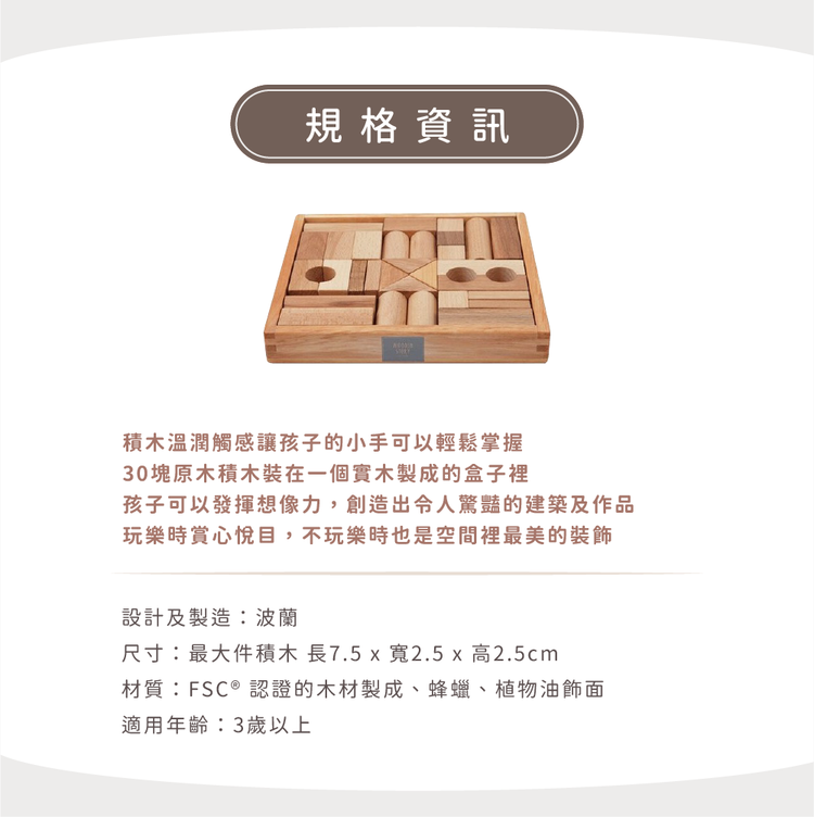 波蘭【WOODEN STORY】原木積木組-30pcs