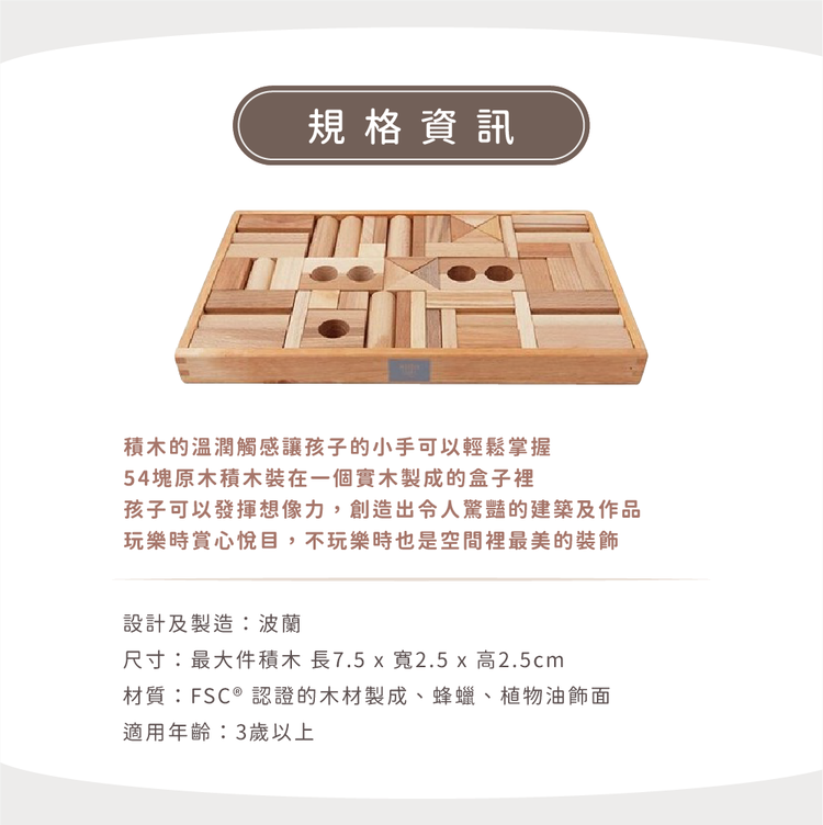 波蘭【WOODEN STORY】原木積木組-54pcs