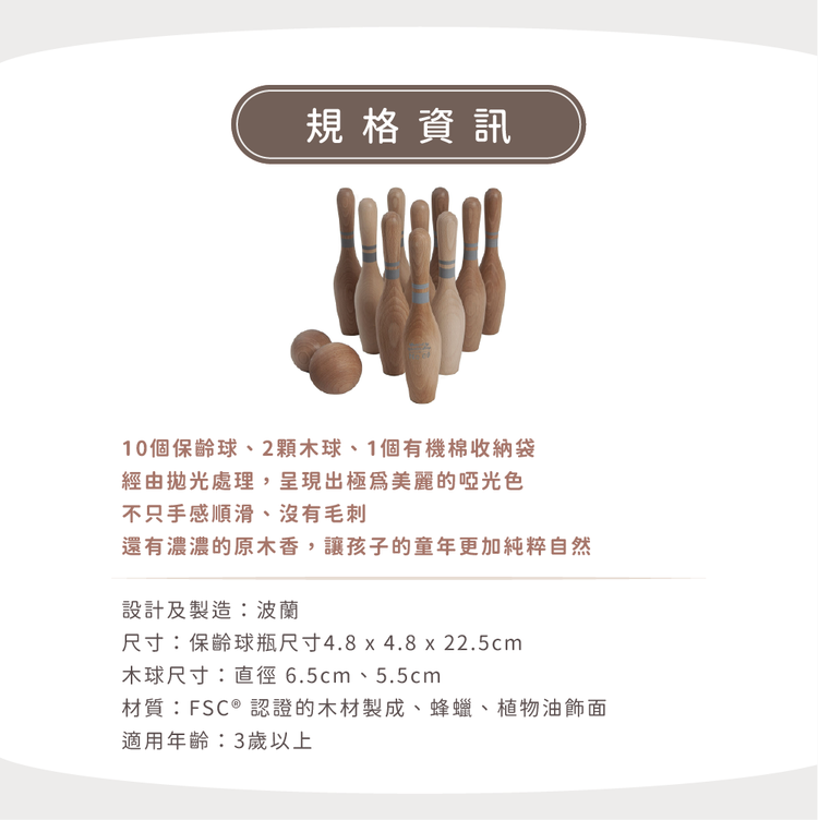 波蘭【WOODEN STORY】原木保齡球組-10pcs