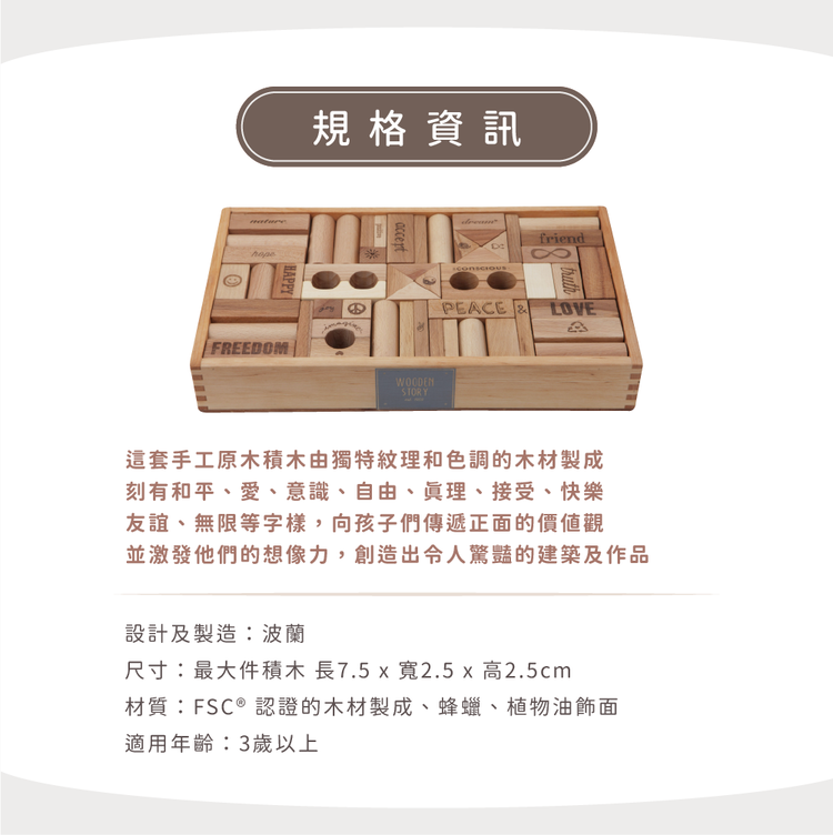 波蘭【WOODEN STORY】原木積木組-108pcs